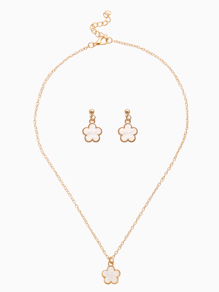 Набор 2 предмета: серьги, кулон «Цветочки», 44 см, белый в золоте
