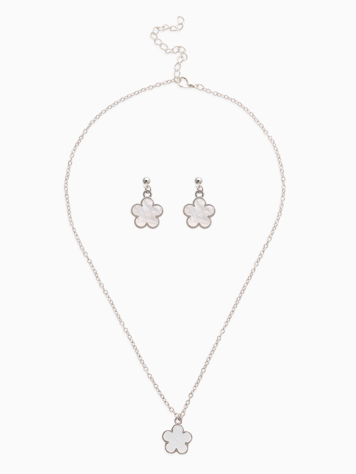 Набор 2 предмета: серьги, кулон «Цветочки», 44 см, белый в серебре