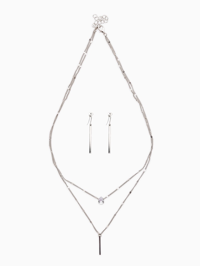 Набор 2 предмета: серьги, колье «Минимализм», 45 и 55 см, белый в серебре