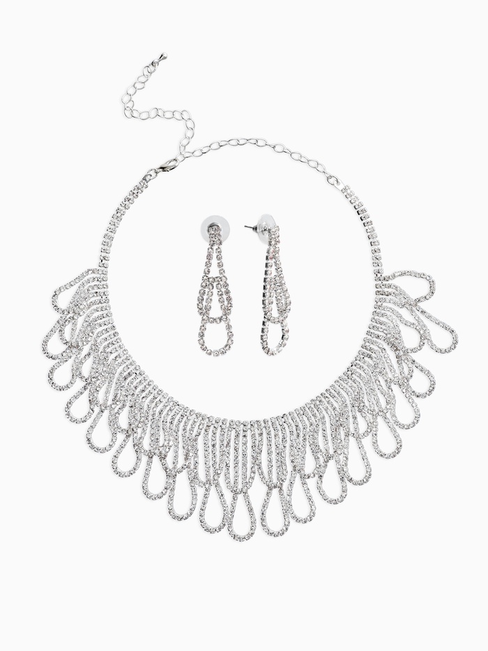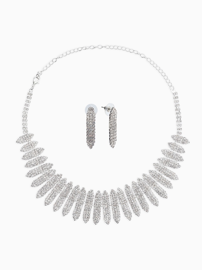 Набор 2 предмета: серьги, колье со стразами «Лёд. Лепестки». d=13.5 см, белый в серебре