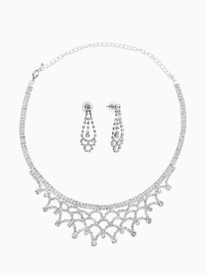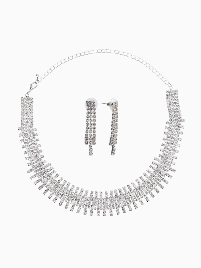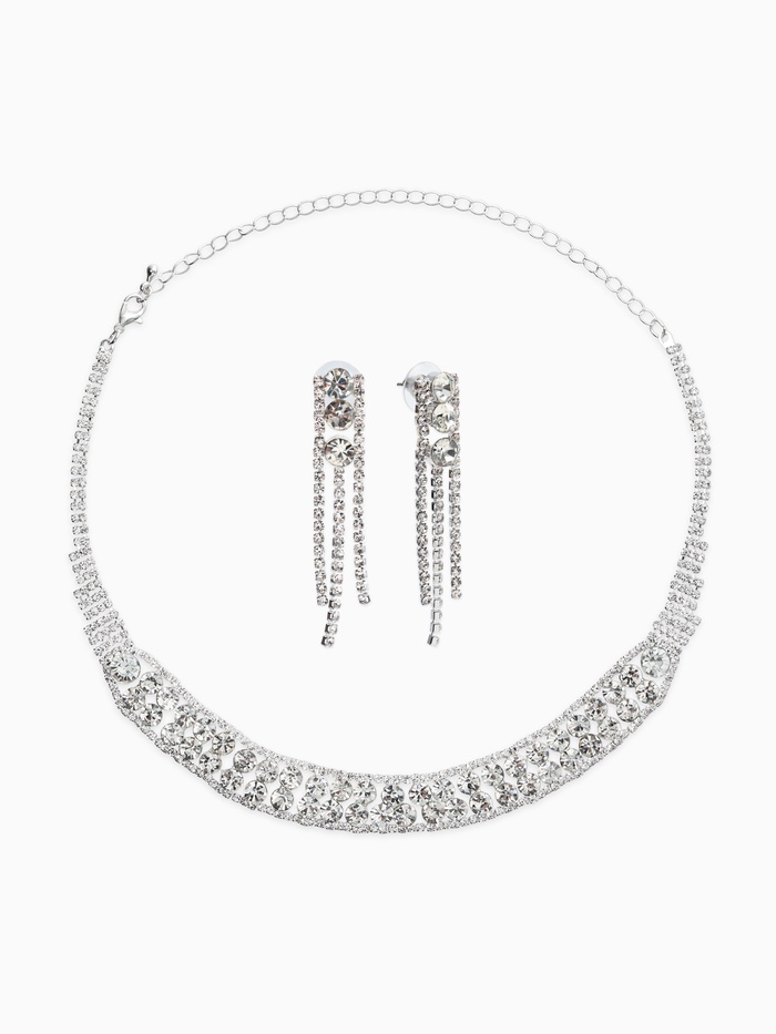 Набор 2 предмета: серьги, колье со стразами «Лёд». d=13.5 см, белый в серебре