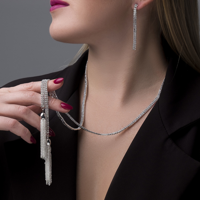 Гарнитур 2 предмета: кулон, серьги «Элегантность» кисточки, цвет белый в серебре, 50 см