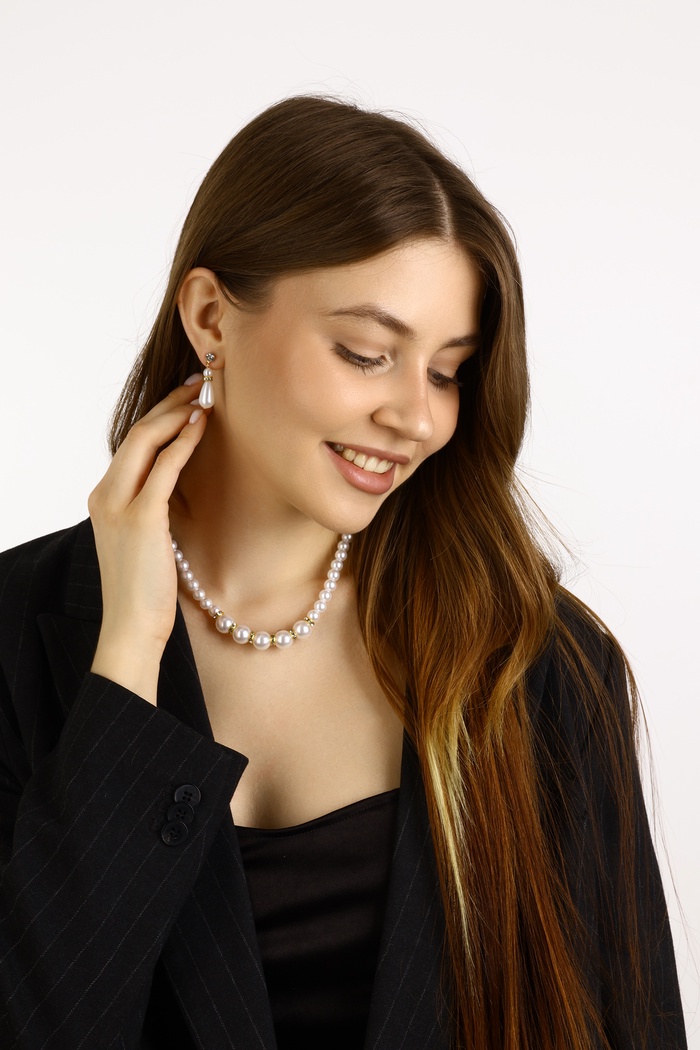 Набор 2 предмета: серьги, колье «Антуанетта» капли и ряд бусин, цвет белый в золоте, 40 см