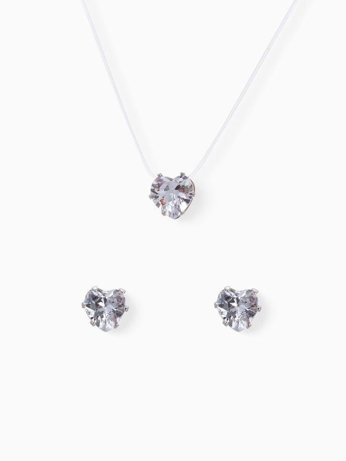 Гарнитур 2 предмета: кулон, серьги «На леске» сердечко, цвет белый в серебре, 30 см