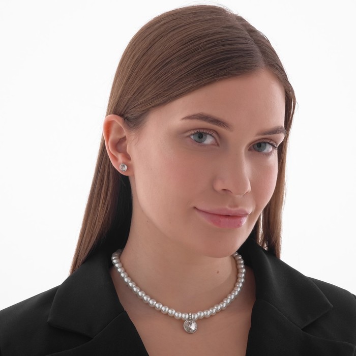 Набор 2 предмета: серьги, колье «Антуанетта» кристаллы, цвет белый в серебре, 40 см