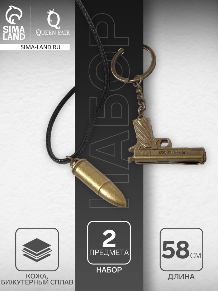 Набор 2 предмета: кулон, брелок «Пуля», цвет чёрный в чернёном золоте, 58 см