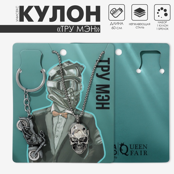 Набор 2 предмета: кулон, брелок «Тру мэн», цвет серебро, 60 см