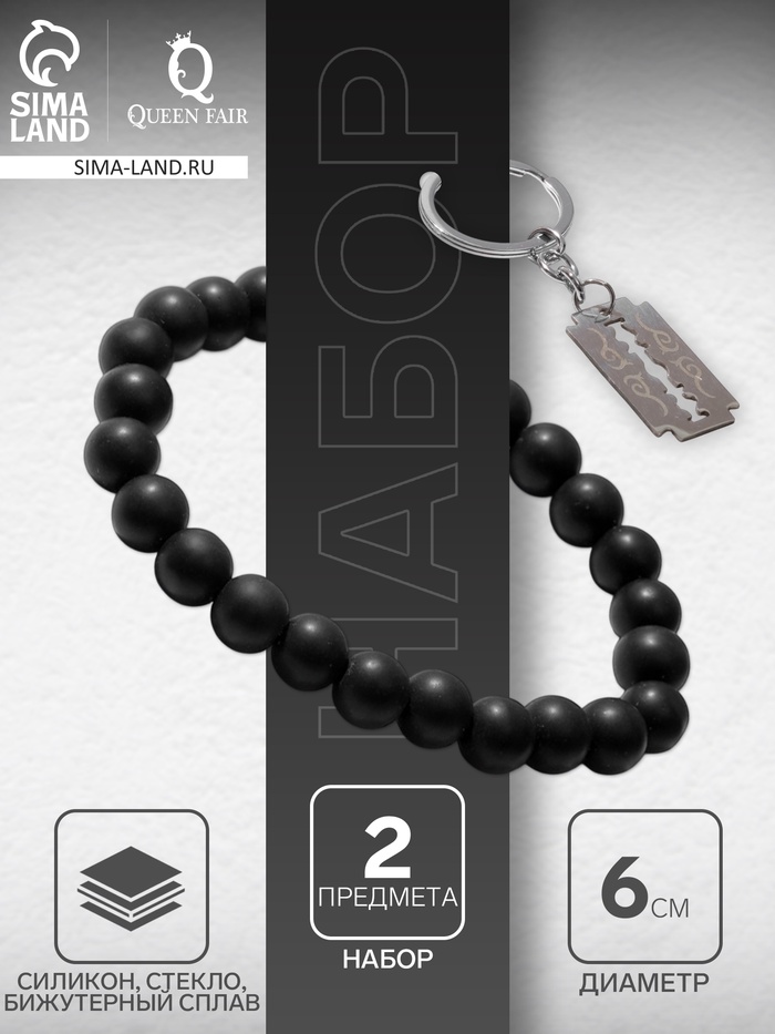 Набор 2 предмета: браслет, брелок «Лезвие», цвет чёрный в серебре