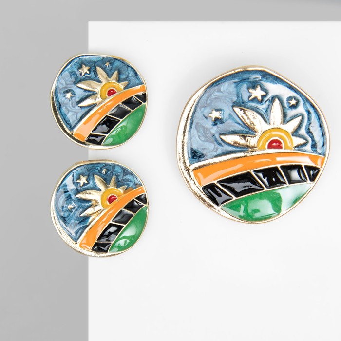 Набор 2 предмета: значки, брошь-кулон «Закат», цветной в золоте