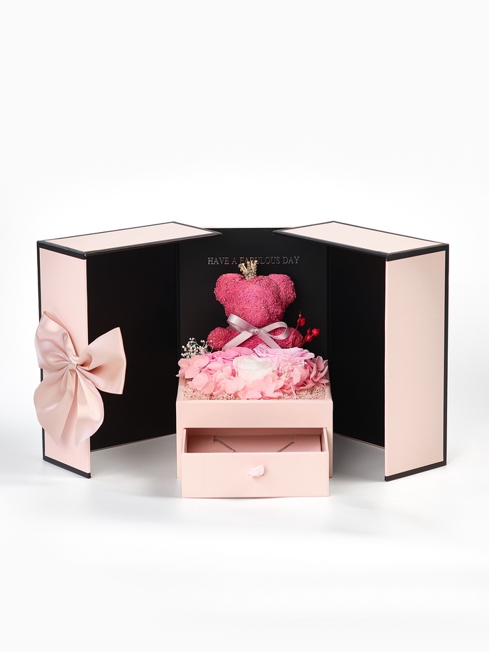 Набор с кулоном «Я тебя люблю», в коробке с мишкой, цвет серебро, нежно-розовая коробка
