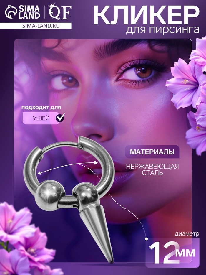 Пирсинг в ухо «Кольцо» шип с шариками, d=12 мм, цвет серебро