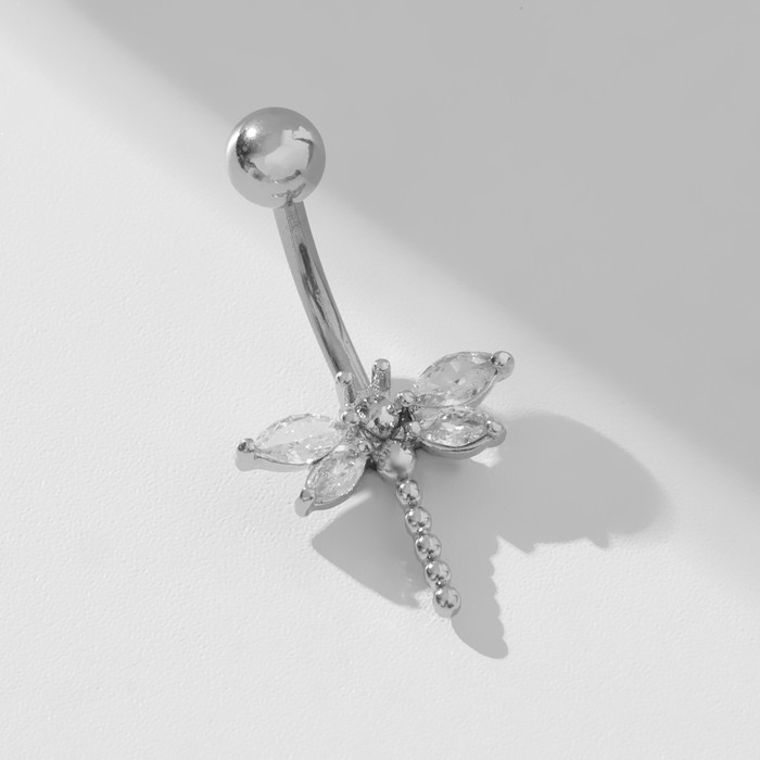 Пирсинг в пупок «Стрекоза», штанга L=1 см, белый в серебре