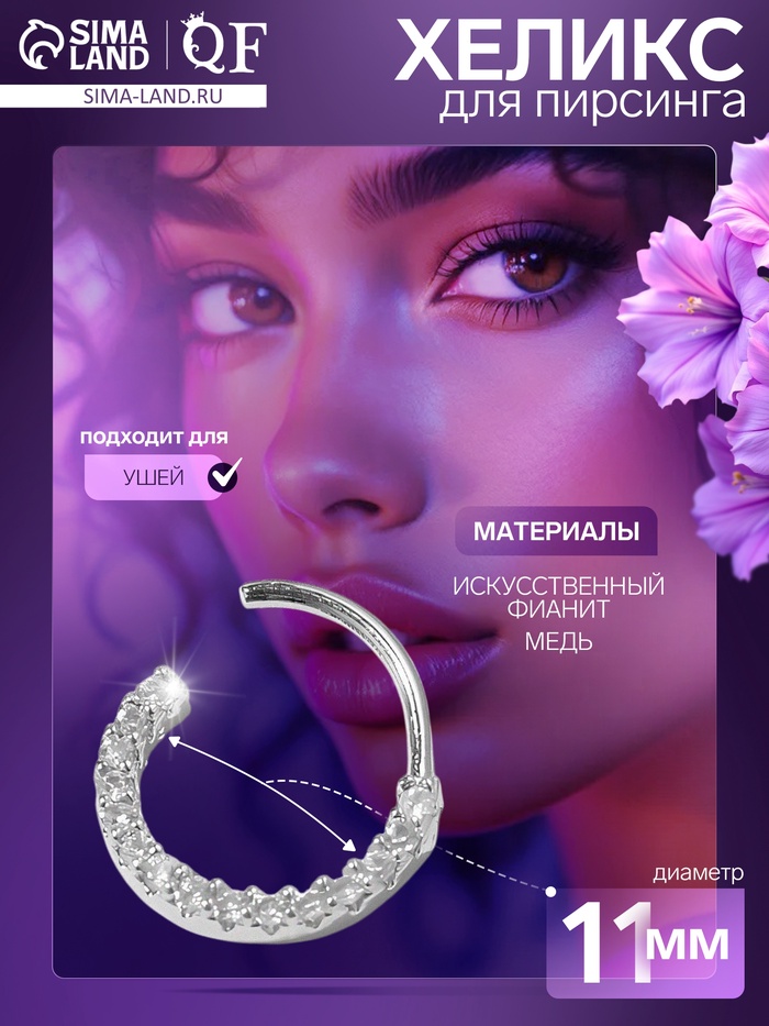 Пирсинг в ухо «Кольцо» (хеликс), d=11 мм, белый в серебре