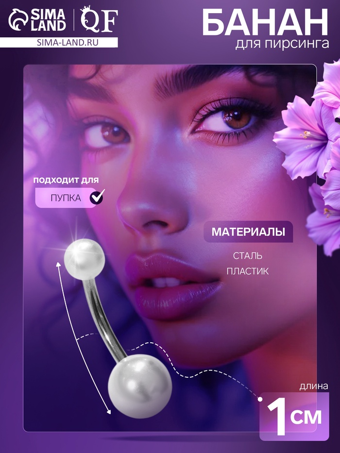 Пирсинг в пупок «Жемчуг», штанга L=1 см, белый в серебре