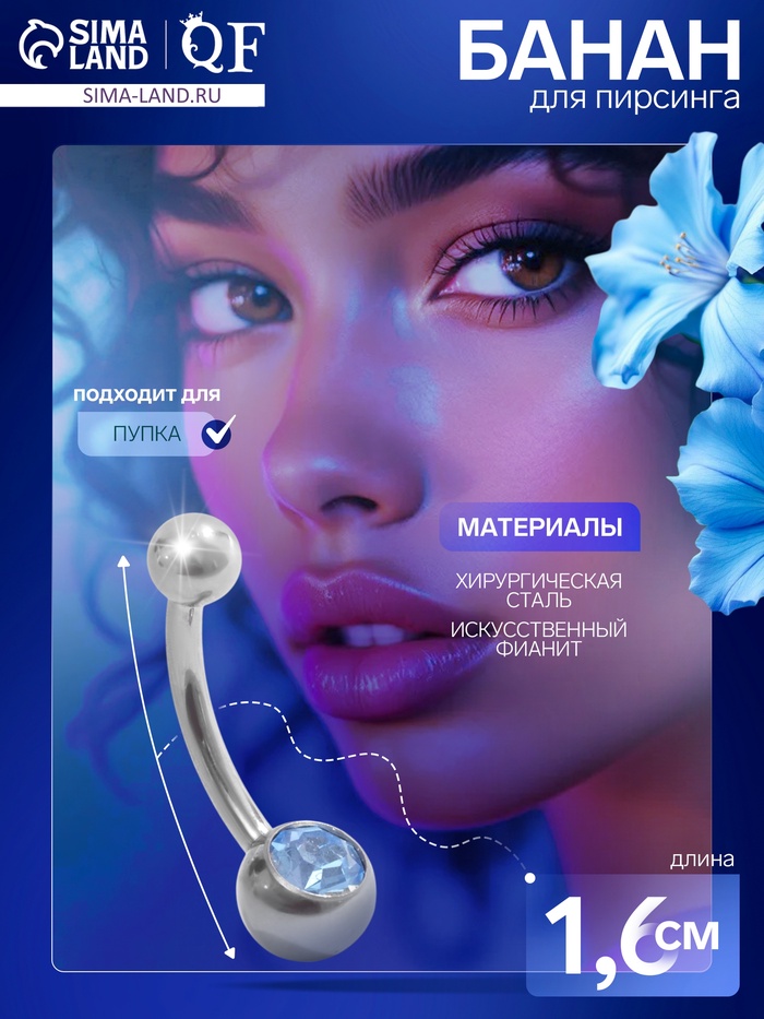 Пирсинг в пупок «Циркон», круг, голубой в серебре