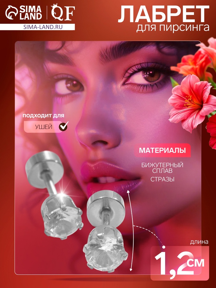 Пирсинг лабрет «Сияние», L=1.2 см, белый в серебре