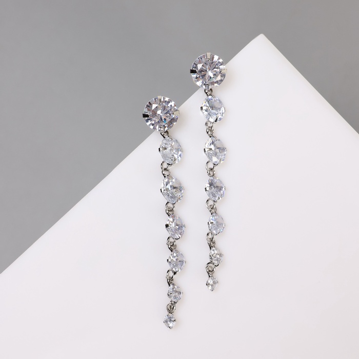 Серьги висячие со стразами «Змейка» L= 7,6 см, цвет белый в серебре