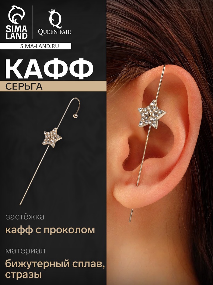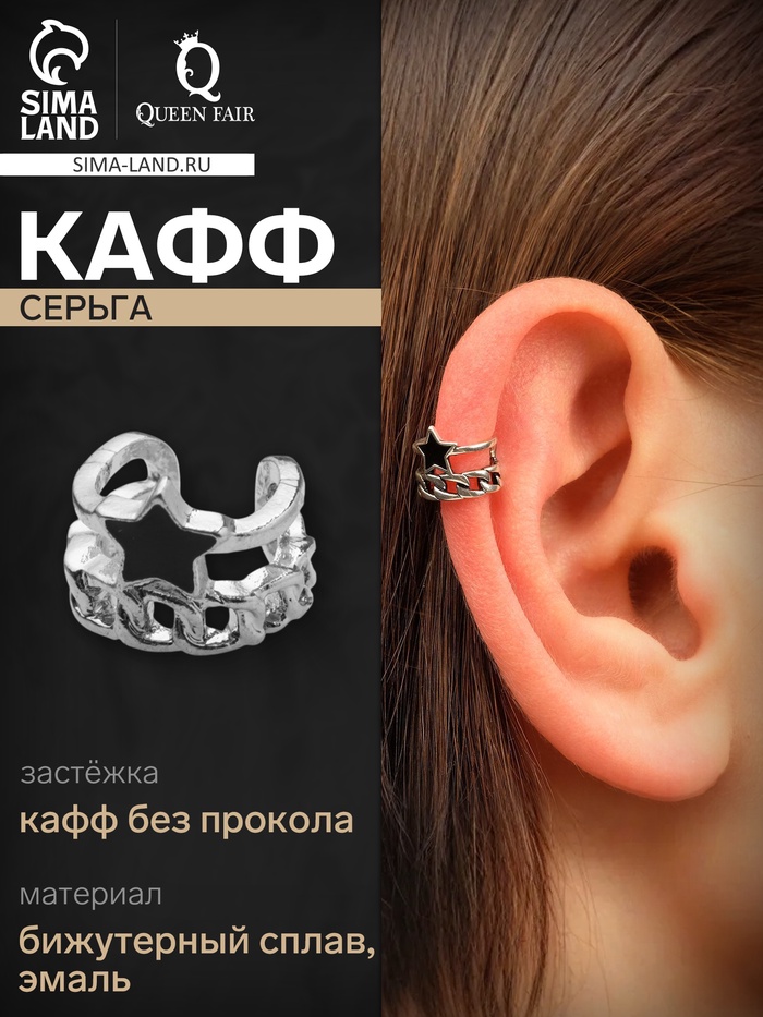 Серьга кафф «Звезда», цепь, цвет чёрный в серебре