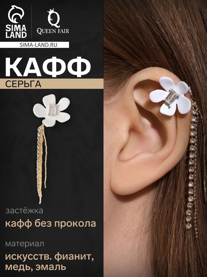 Серьга кафф «Водопад», цвет серебро, 10 см