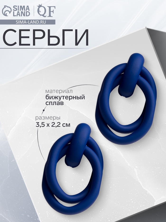 Серьги металл «Боттега» два овала, цвет синий