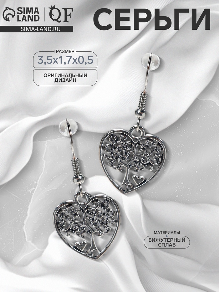 Серьги металл «Любовь» древо в сердце, цвет чернёное серебро