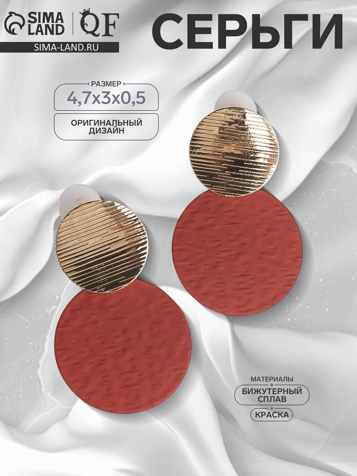 Серьги металл «Леди» текстурные, цвет красный в золоте