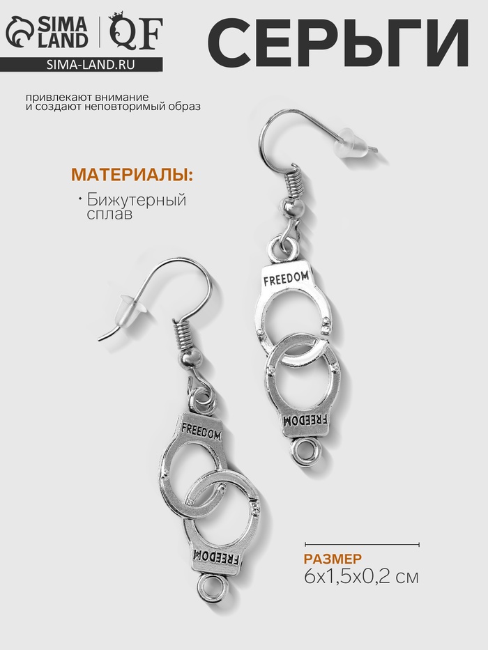 Серьги металл «Наручники», цвет чернёное серебро