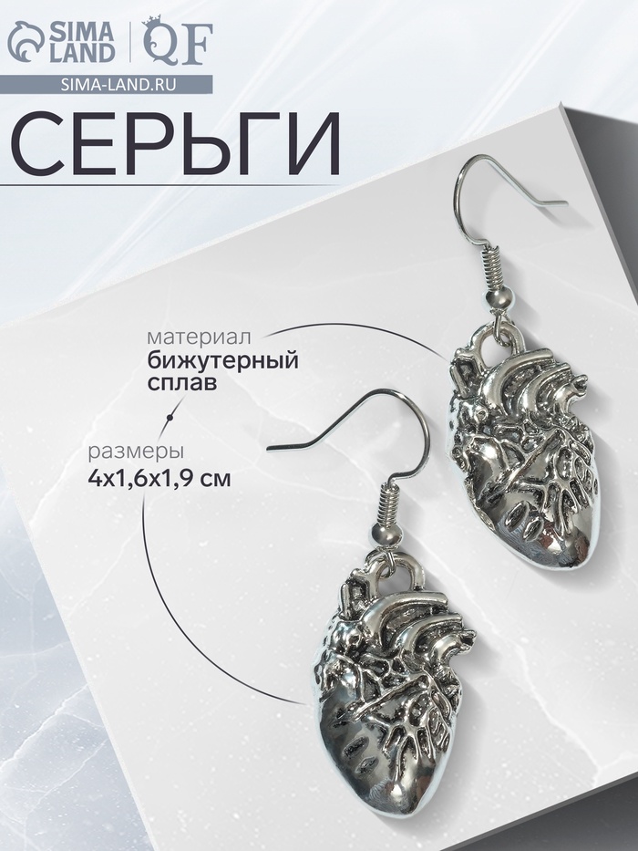 Серьги металл «Сердца» воссоединение, цвет серебро