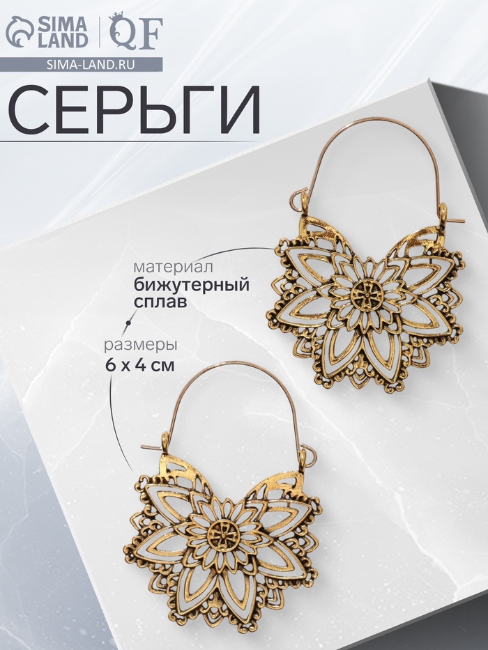 Серьги металл «Восток» цветок солнца, цвет чернёное золото