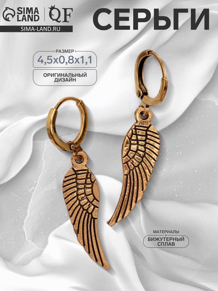 Серьги металл «Крылья» соло, цвет чернёное золото