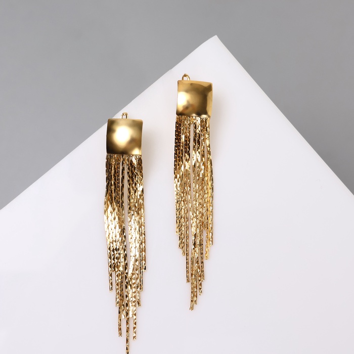 Серьги висячие «Голливуд» квадрат и нити, цвет золото, 6.5 см