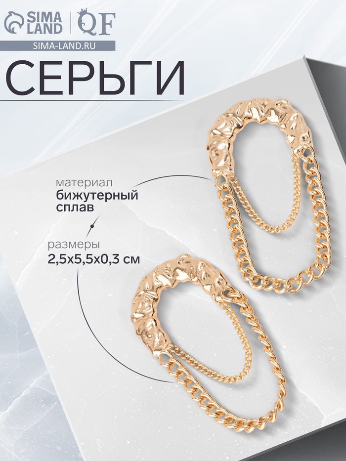 Серьги металл «Цепи» два звена, цвет белый в золоте