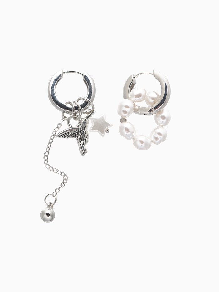 Серьги со съёмным элементом «Трансформер» птица, белые в серебре