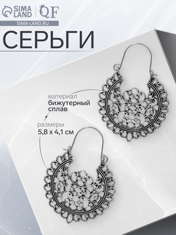 Серьги металл «Восток» узоры, цвет чернёное серебро