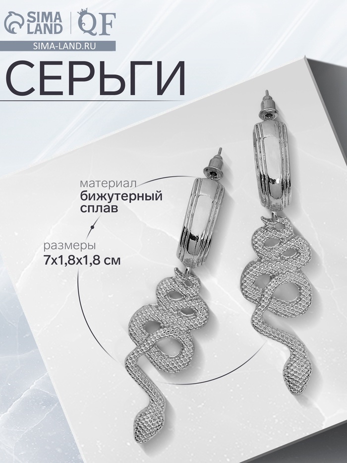 Серьги металл «Змея» неповторимая, цвет серебро