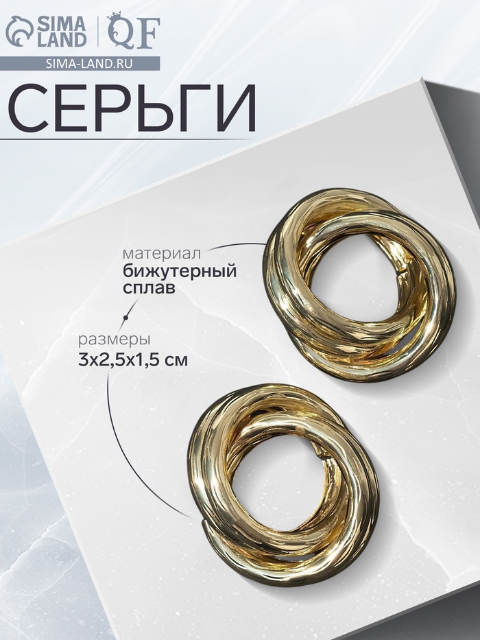 Серьги металл «Геометрия» круги переплетённые, цвет золото