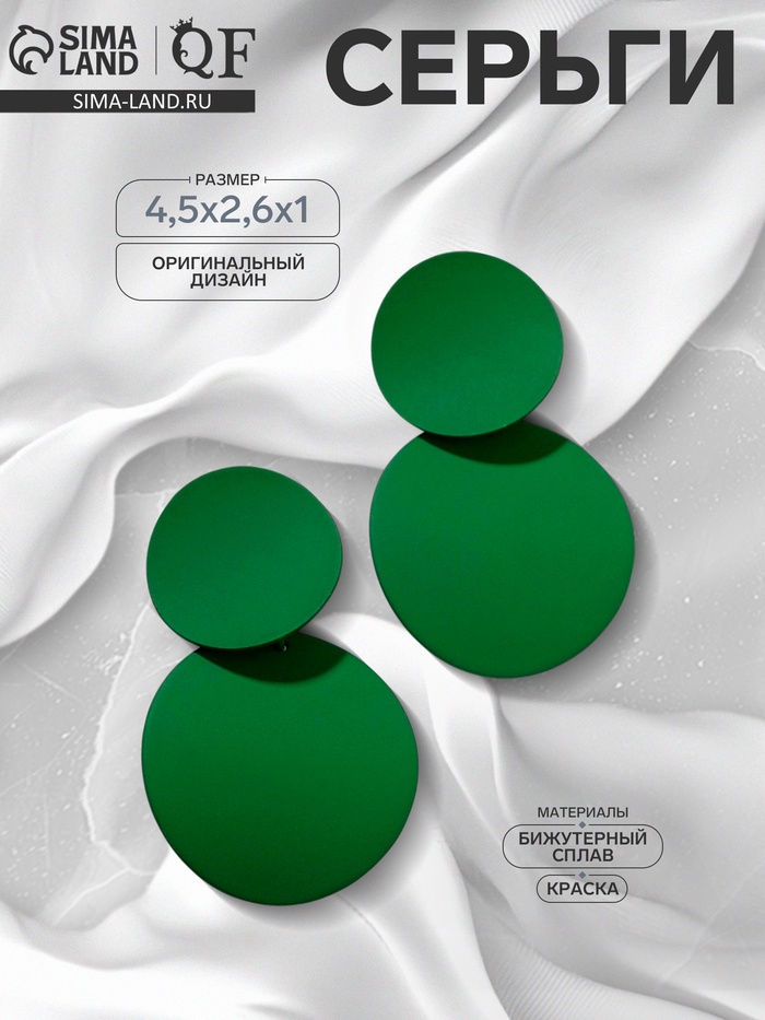 Серьги металл «Леди» круги, дуо, цвет тёмно-зелёный