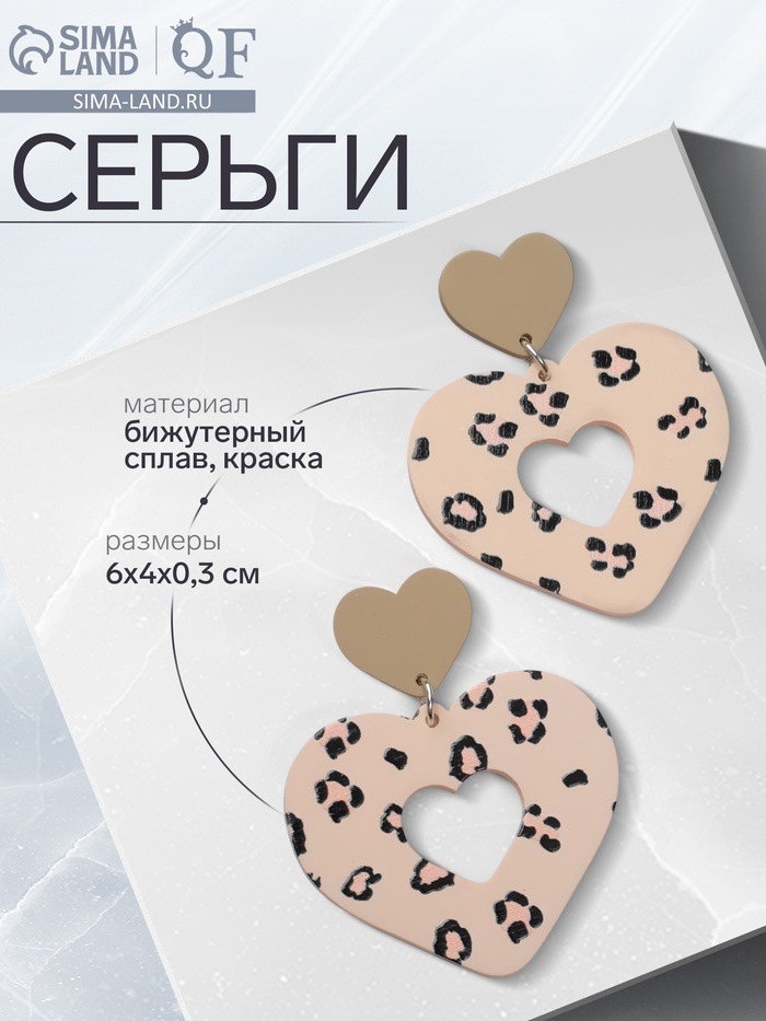 Серьги металл «Сердце» леопард, цвет розово-зелёный в серебре