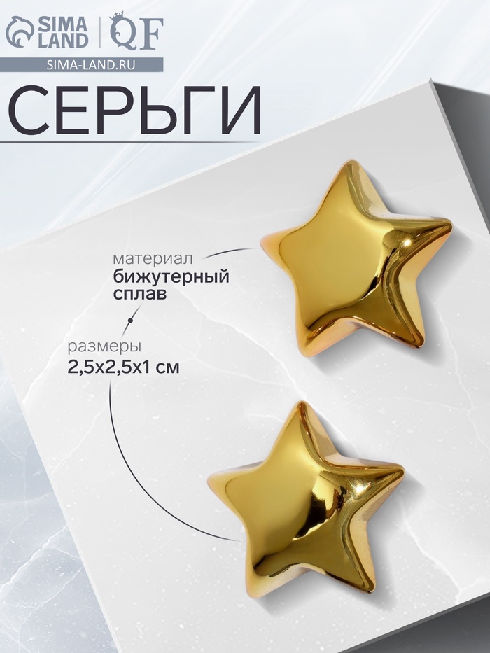 Серьги металл «Звезда» малая, цвет золото