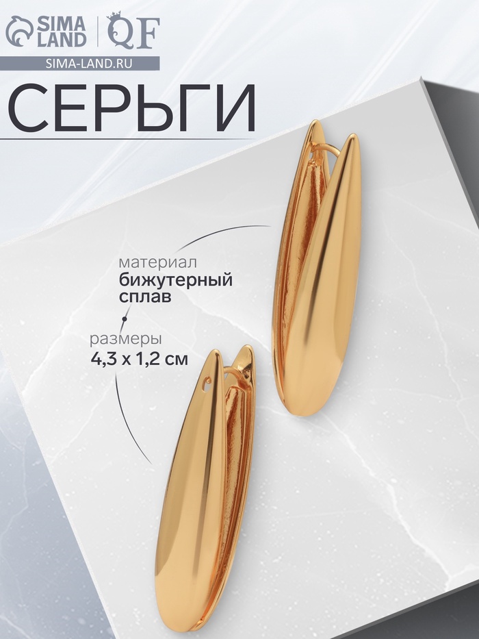Серьги металл «Аккорд» капля вытянутая, цвет золото