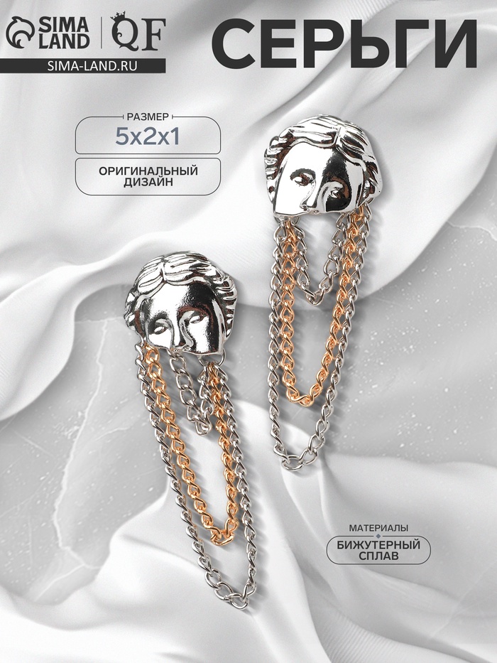 Серьги металл «Лица» цепи, цвет серебро с золотом