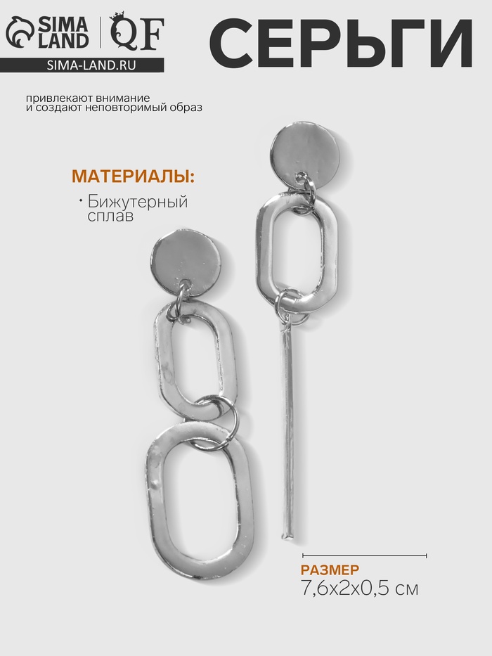 Серьги висячие «Притяжение» стиль, цвет серебро, 7,6 см