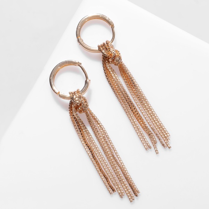 Серьги висячие «Стиль» цепи в узле, цвет золото