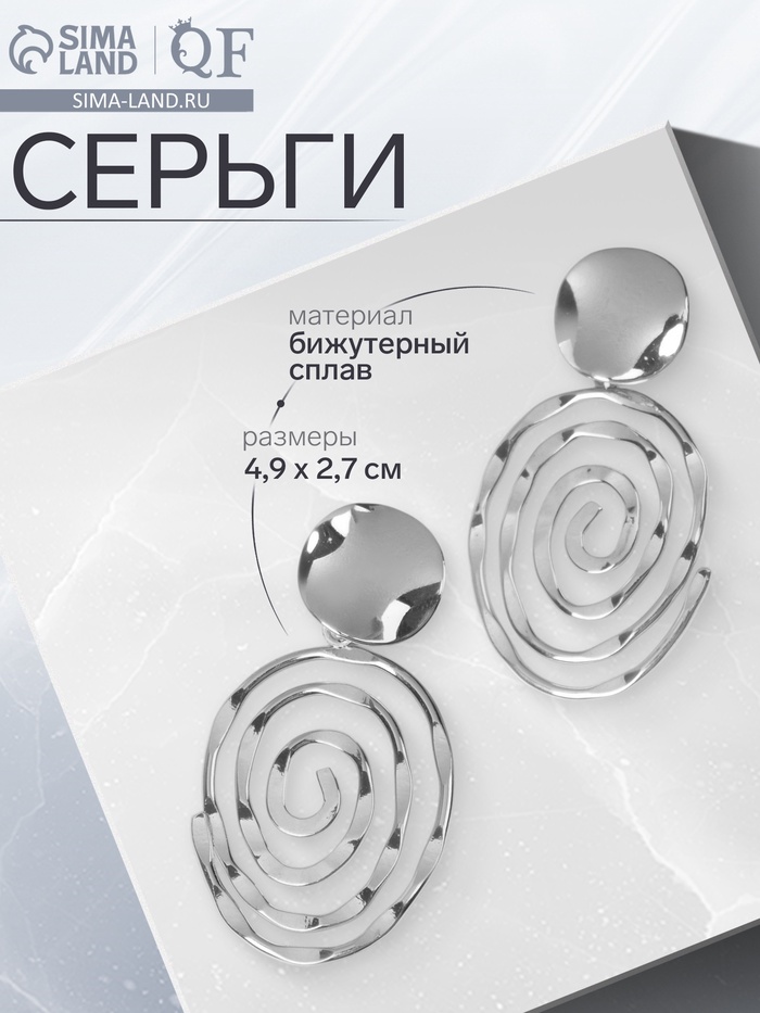 Серьги металл «Геометрия» овалы на кольце, цвет серебро