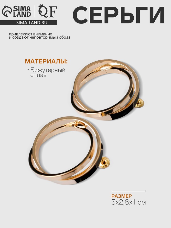 Серьги металл «Кольца» 6 рядов, тренд, цвет золото
