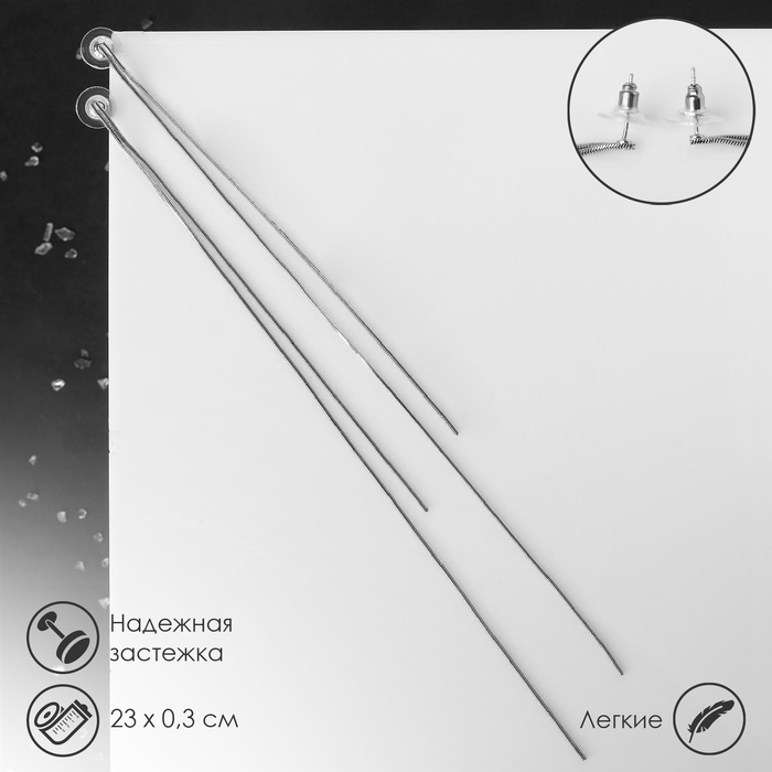 Серьги висячие «Голливуд» квадрат и нити, цвет серебро, 6,5 см