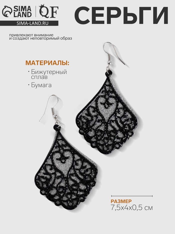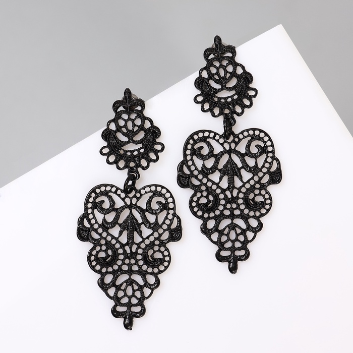 Серьги висячие «Шелест» восточная капля, ажур, блестка, цвет чёрный, 7,5 см