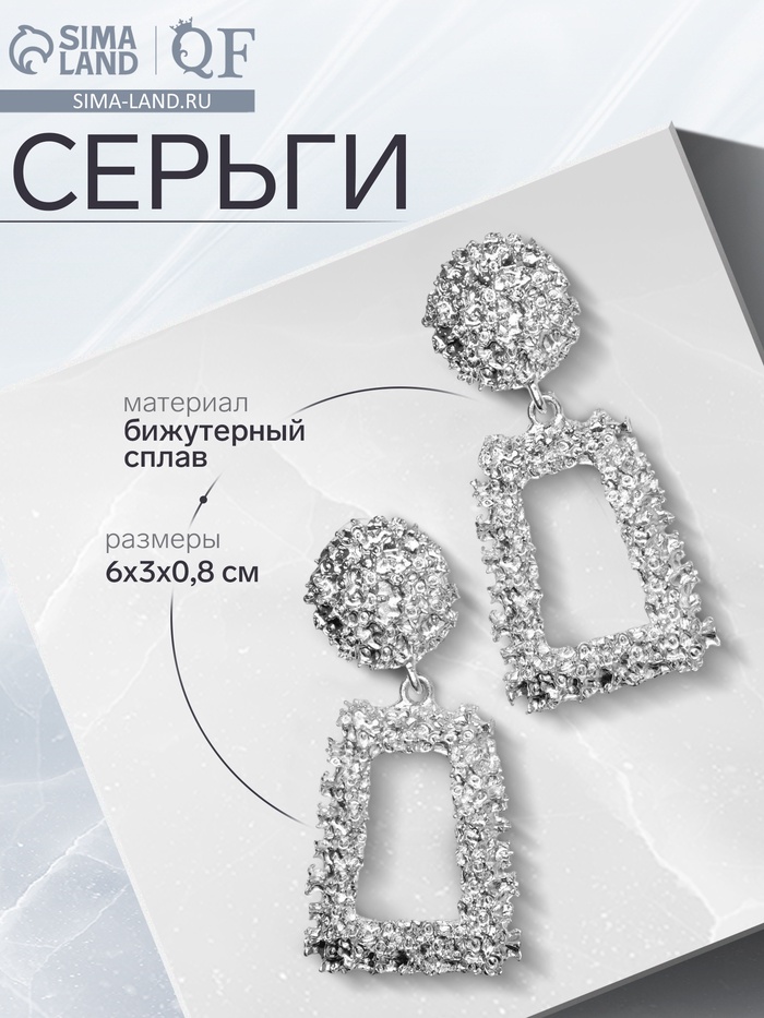 Серьги металл «Эстетика» трапеция, цвет серебро