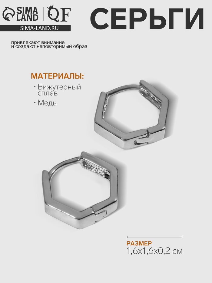 Серьги металл «Геометрия» шестиугольник, цвет серебро