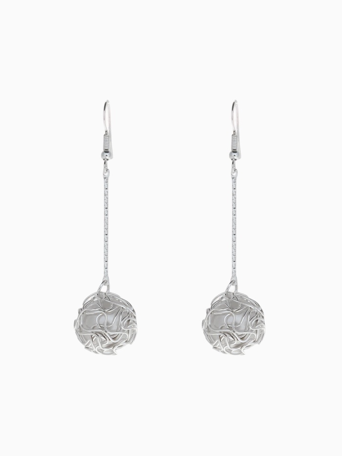 Серьги висячие «Шар плетёный», цвет белый в серебре, 6,5 см